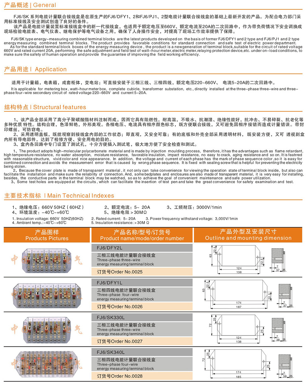 FJ6/DFY1L、SK型電能計量聯合接線盒
