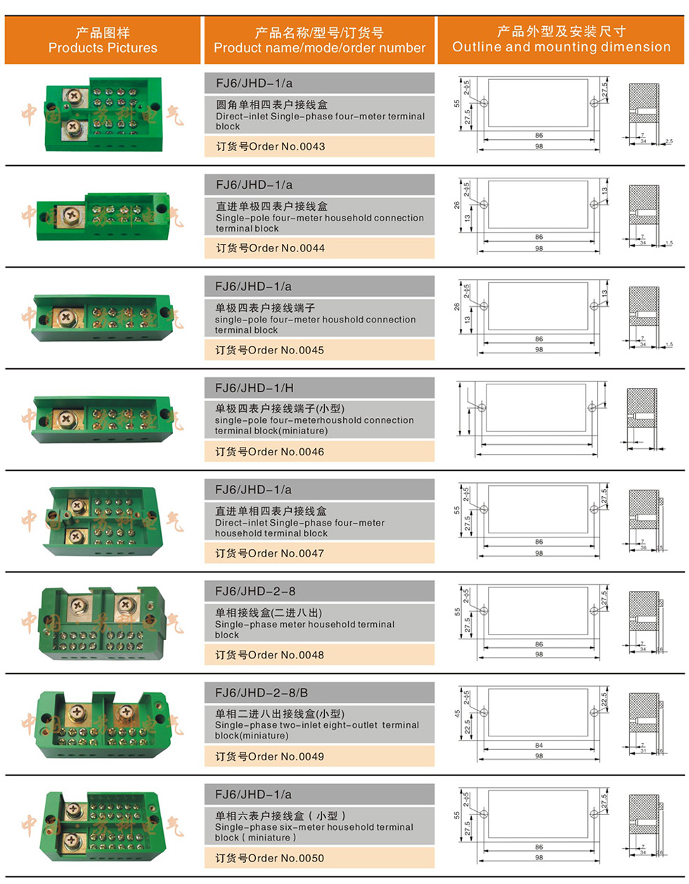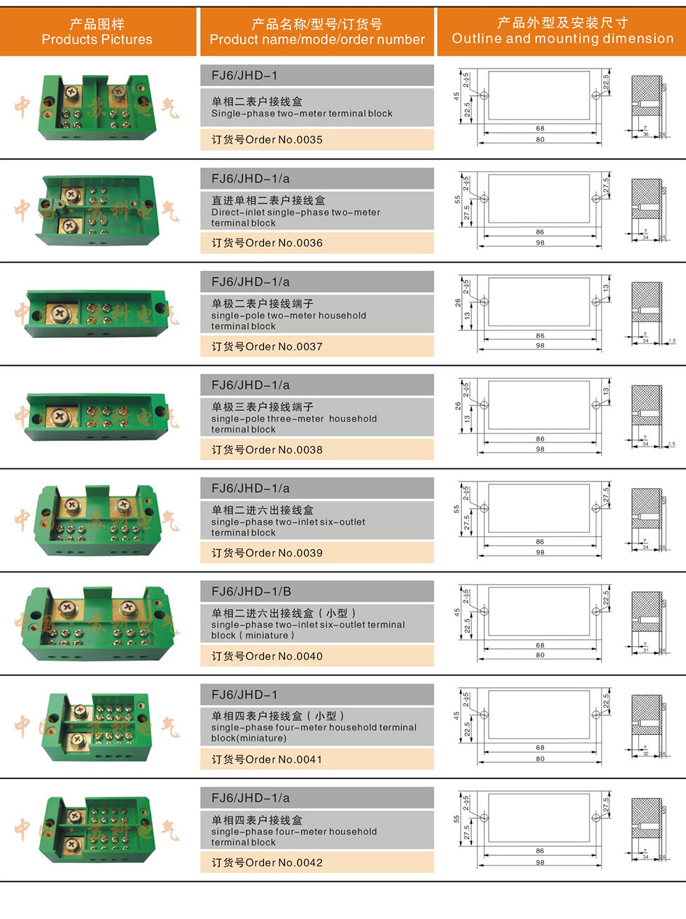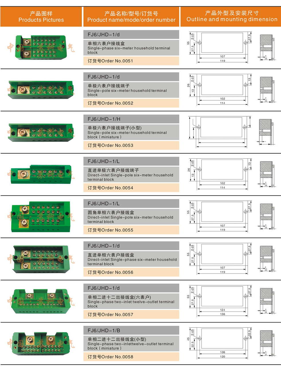 FJ6/JHD-1 系列單相計量箱專用接線盒