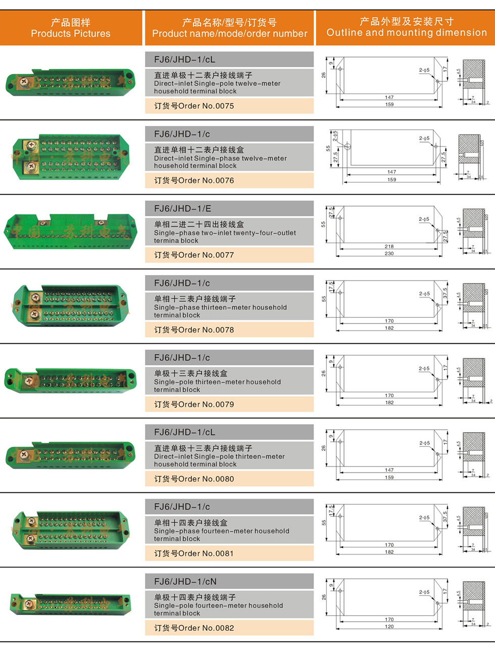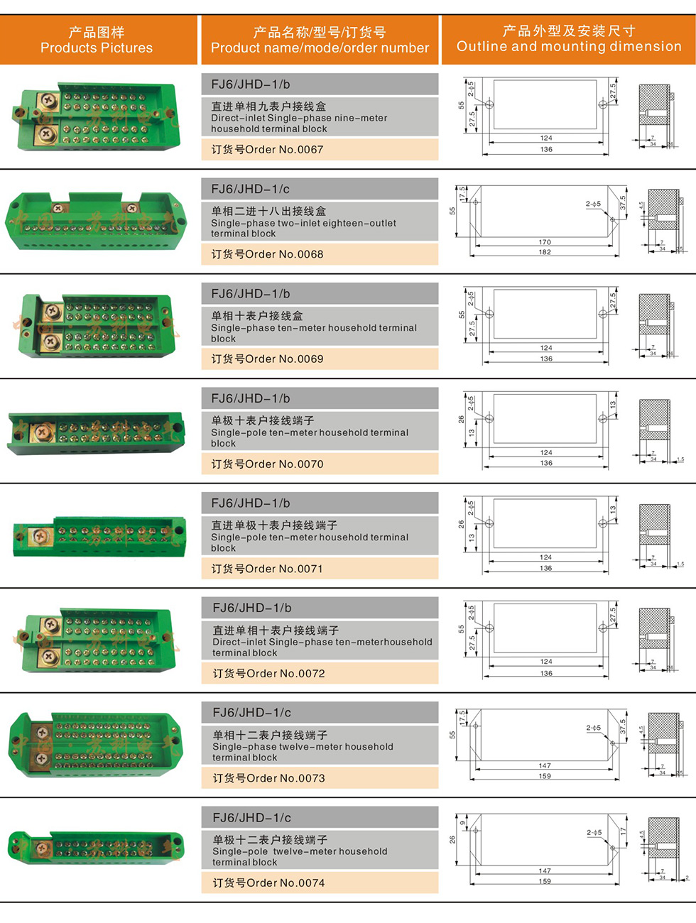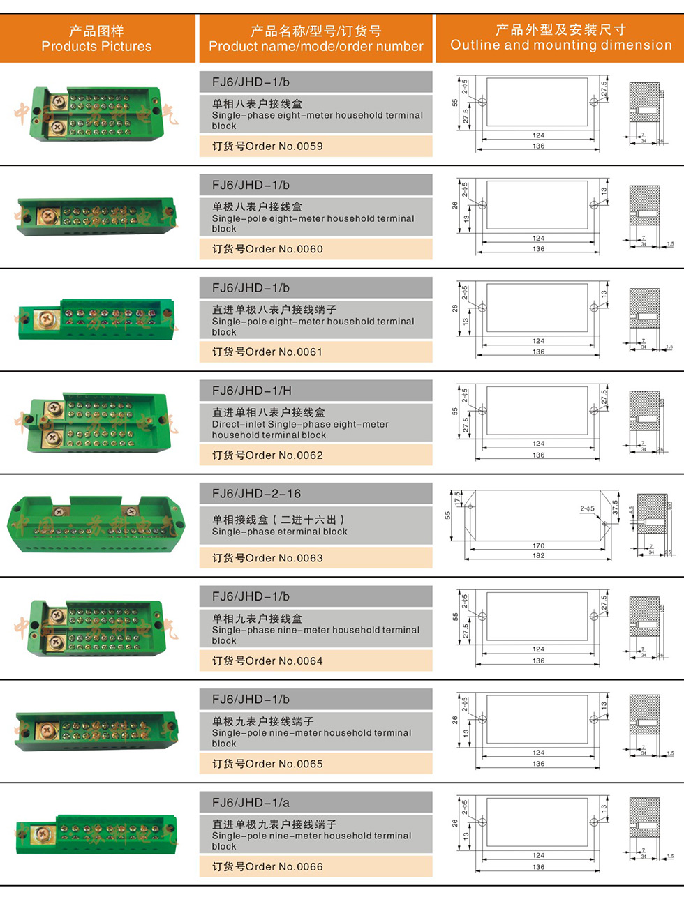 FJ6/JHD-1 系列單相計量箱專用接線盒