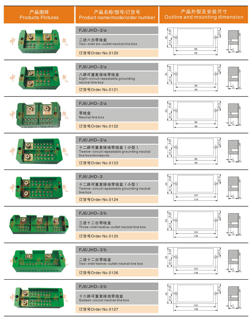 FJ6/JHD-3 系列可重復接地計量箱零線盒