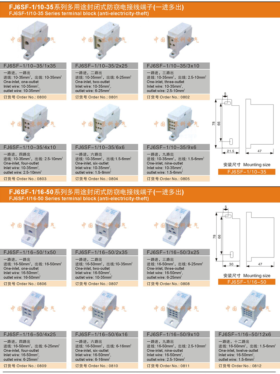 FJ6SF 系列多用途封閉式防竊電接線端子精巧型