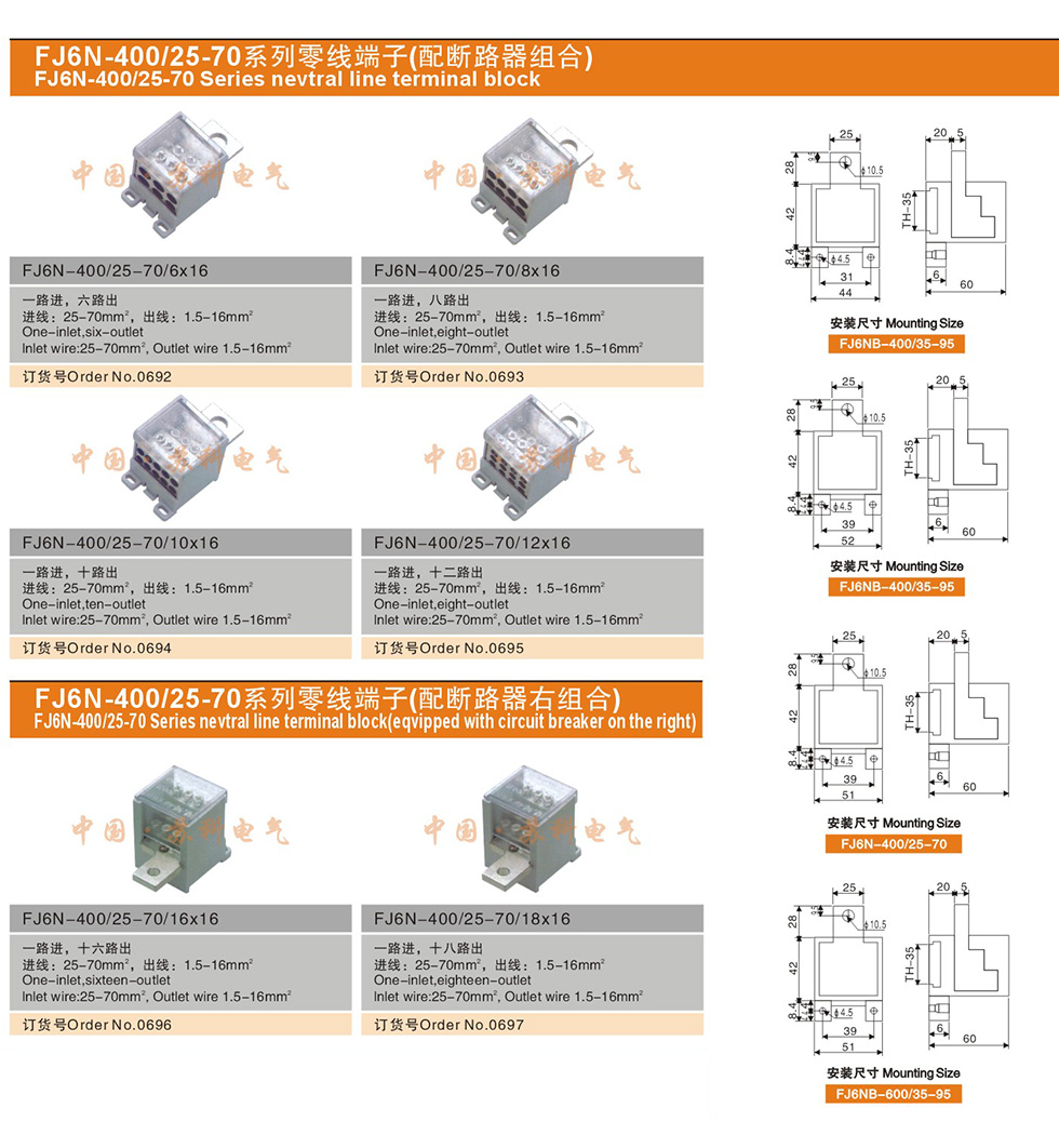 FJ6N-400/25-70 系列零線端子( 配斷路器組合)