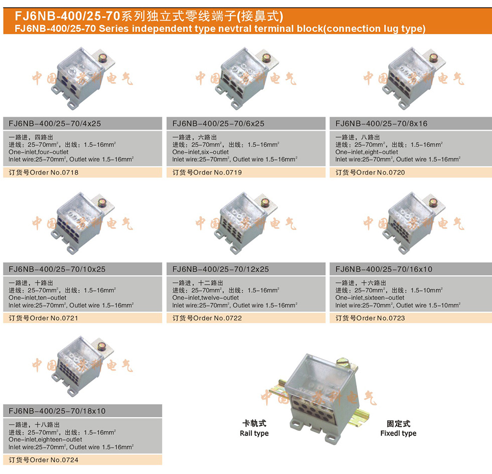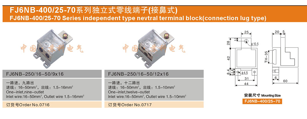 FJ6NB-400/25-70 系列獨立式零線端子( 接鼻式)