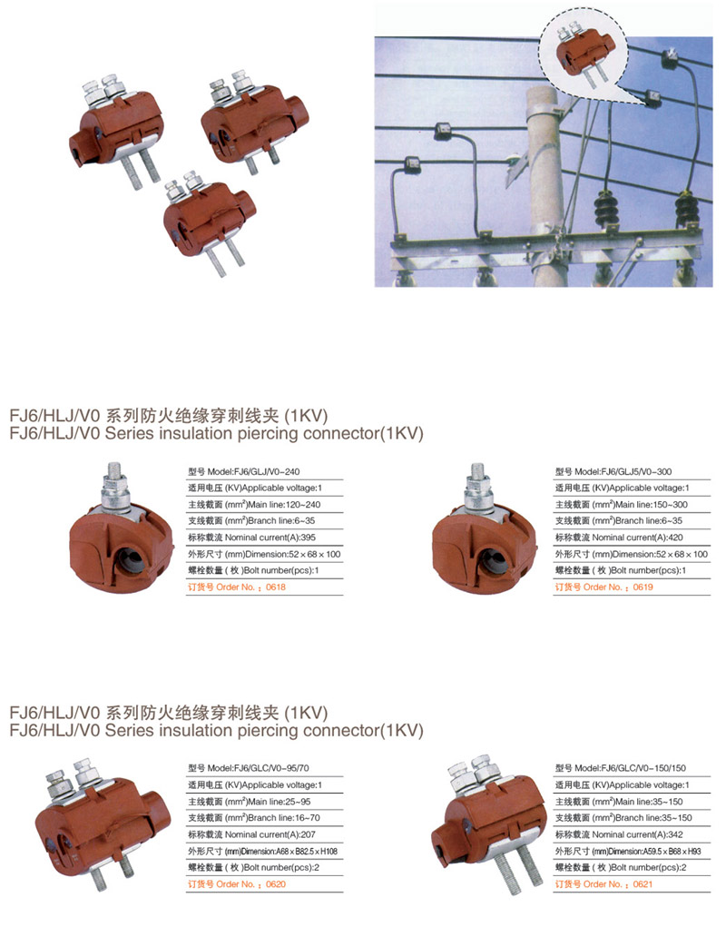 FJ6/GLJ、GLC/V0 系列防火絕緣穿刺線夾(1KV)