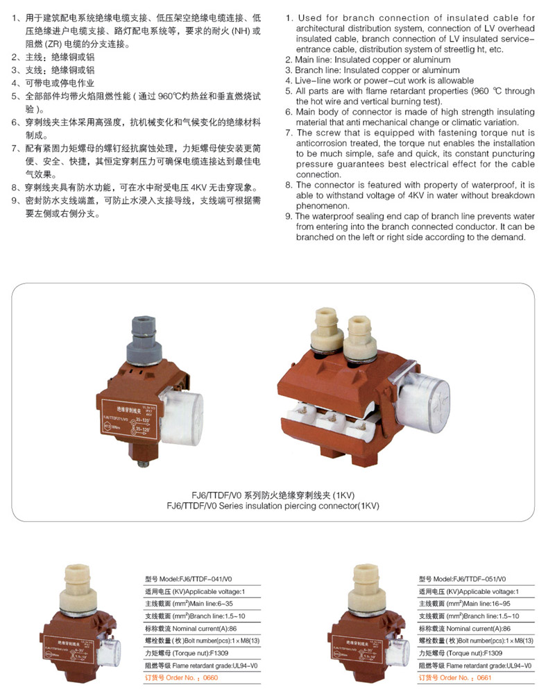 FJ6/TTDF 系列防火絕緣穿刺線夾(1KV)