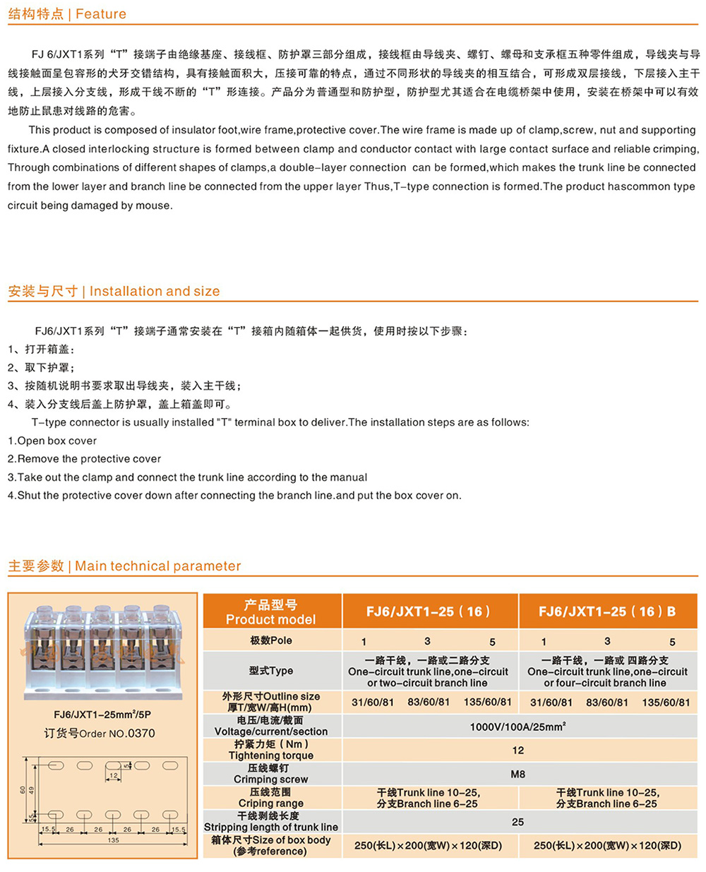 FJ6/JXT1系列T型接端子及電纜T型接箱